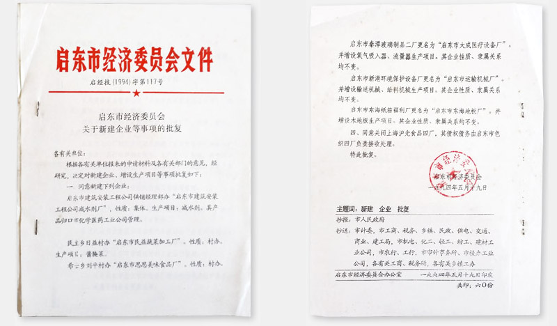 | 1994年5月19日 经当时的启东市经济委员会批复同意,改制成立:启东市运输机械厂 |