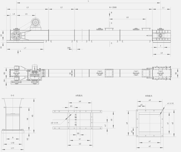 5、驱动装置的安装采用背装式,(左装或右装)链传动,即方便安装又减少占地面积。