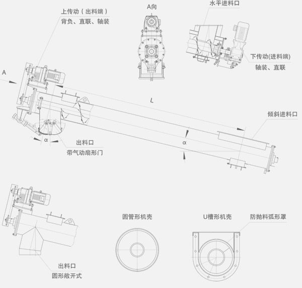 注:圆管形倾角α≤200:U槽形倾角α≤160。