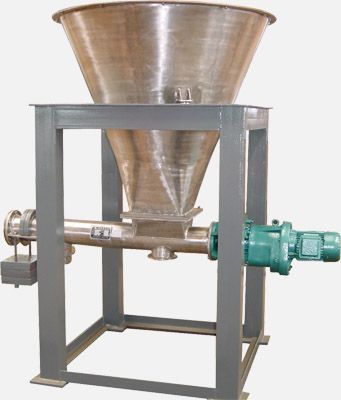 出料螺旋机与供料的称重料斗刚性地联结为一体,对其进行称重是根据单位时间内重量损失量,将实际给料速率与设备给料速率进行比较,由可编程序控制器控制变频调速器,从而控制出料螺旋的出料量,使给料速率始终准确地符合设定值。而在短时间的加料过程中,出料装置借助重力式工作期间存储的控制信号,按容积式原理工作。