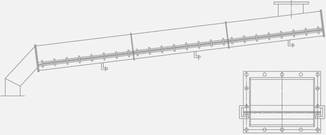 输送物料的高端喂入上壳体,压缩空气由专设的鼓风机吹入下壳体并通过密布孔隙的透气层分布在物料颗粒之间,使物料进行所谓的气化以改变物料的磨擦角,以其形成流动状态,而沿斜度下滑达到输送目的。