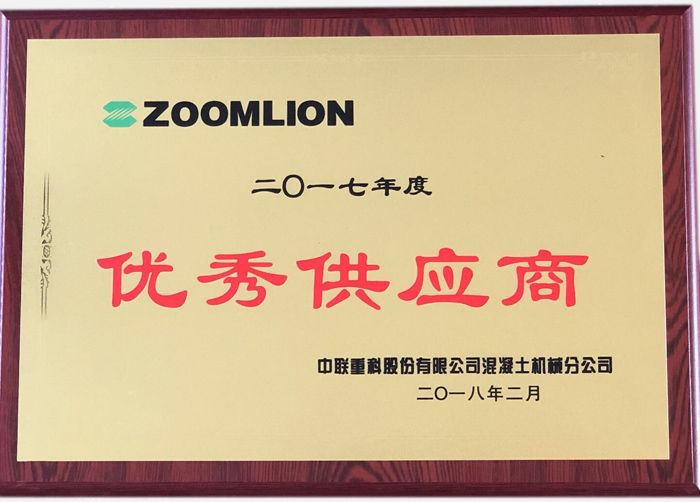 2018年2月7日,中联重科混凝土机械公司召开供应商年会,我公司被授予2017年度中联重科优秀供应商。