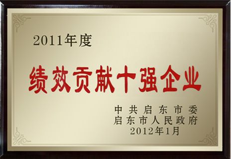 2012年2月20日,我公司经有关部门考评,被启东市委市政府授于启东市“绩效贡献十强企业”。长期以来,我公司对外强化市场运营,对内狠抓内部管理,税收贡献率、能耗比等综合数据均处前例,已连续三年成为企业所在地纳税前三名企业!!